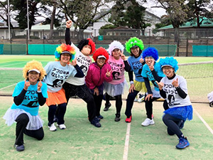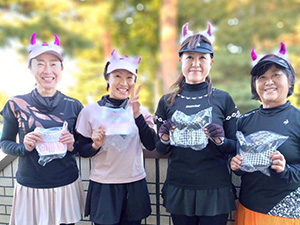 当日は最初にリーグ戦を行った後、トーナメントを行いましたが、コートのあちこちから応援が飛び交い、皆さん、団体戦ならではの雰囲気を存分に楽しんでいました。またアフロやハロウィンの仮装をするチームも多く、これもまたチーム戦ならではの一興! メーカーの出店もあり、試合の合間に買い物や手のマッサージを受ける姿も見られました。