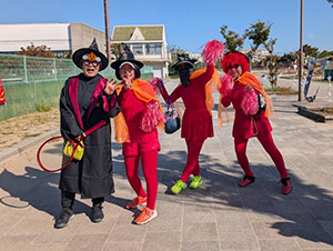 10月30日(木)、県内の浦安総合公園テニスコートで、4名1チームの「秋季ハロウィン団体戦」が開催されました。今年の秋季団体戦は、ハロウィンの仮装で行う初の大会ということで、参加選手たちがどんな仮装をしてくるのかと開催前から盛り上がっていました。