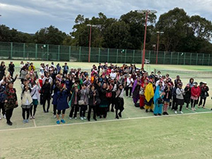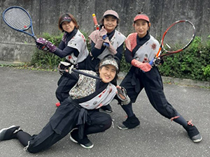 今大会は服装が自由ということもあり、普段のテニスウェアにワンポイントのチャームをつけるチームもあれば、手作りのくノ一(女忍者)の衣装やウォーリーの仮装、ベリーダンス風の衣装、映画『マレフィセント』をモチーフにした華やかな姿など、それぞれが趣向を凝らした装いでコートを彩り、試合の合間にはコスプレの写真撮影が盛んに行われていました。