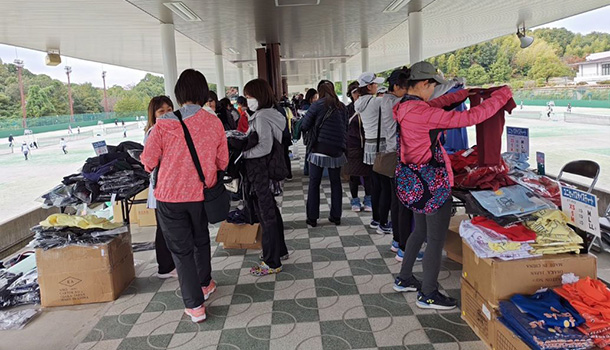 各日とも40チームが参加しての団体戦を行い、テニスの試合はもちろん、じゃんけんで勝敗を決着する場面もあり大いに盛り上がりました。控え時間には趣向を凝らした「ルール講習会」が行われ、笑いも起きるなかで日頃間違えやすいポイントをしっかり確認しました。試合の合間には出店ブースでのお買い物も楽しみ、笑顔溢れる一日を過ごすことができました。