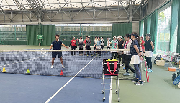 9月8日(月)、岐阜県の「岐阜メモリアルセンター長良川テニスプラザ」にて、本部から井上明里指導員を迎えて技術講習会が開催された。当日は9時半から昼休憩を挟んで15時まで行われ、午前20人、午後19人(中級25人、上級14 人の合計39人)が参加した。非会員1名の参加もあり、会員との交流の場にもなっていた。