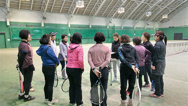 勝見講師は「午前、午後とも参加者が12人ずつだったので、テーマを絞って濃い練習ができたと思う」と感想を話した。また参加者からは、「前半の基礎知識のレッスンで “小指をしっかり握るとラケットを振らないでボレーが打てる”ことを教わり、目からうろこだった」「コートを4つのエリアに分け、一球打つごとにエリアを移動しながらラリーする練習を行い、ったが、全国レディースの入賞チームのように、コート上のどこからでも同じレベルの球が安定して打てるようになると良いと思った」「形式練習ではまずセンターに配球し、空きスペースを作ってからの展開を行い、意識してボールを回すことの重要性を痛感した」「分かりやすく細かく丁寧に教えてもらい、ラリー練習では全員と球を打ちあって下さって嬉しかった」等の感想が聞かれた。