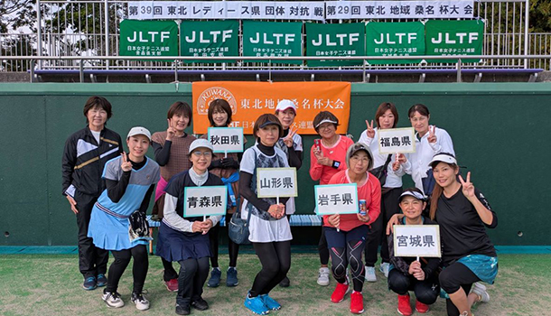 9月27日(土)~28日(日)、新青森県総合運動公園テニスコートにて「第39回東北レディース県団体対抗戦」を兼ねて「第29回東北地域桑名杯大会」が開催されました。2日間ともテニス日和の好天に恵まれ、選手の皆さんも日頃の練習の成果を発揮し、生き生きとプレーしていました。