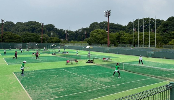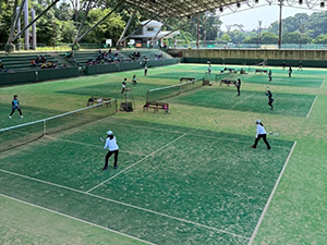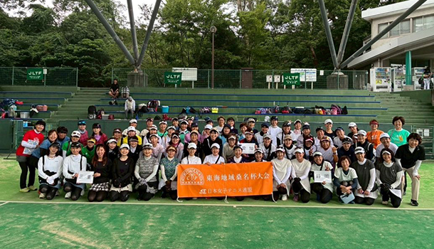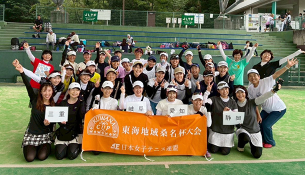 7月8日、浜松新電力テニスコートにて「第18回東海地域桑名杯・第15回クローバーカップ」が開催されました。本大会は、各県の桑名杯代表ペアと昨年から創設された65歳以上の2ペア、60歳以上の2ペアの合計8ペアがチームを作り、東海4県で総当たりの団体戦を行います。この日は猛暑日で熱中症も心配されましたが、タイブレークまでもつれる接戦も多く、各コートでは猛暑をしのぐ戦いが繰り広げられました。