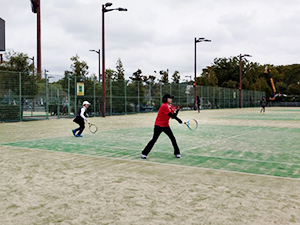 当日は雨予報で開催があやぶまれましたが、そこは、晴れの国、岡山! どうにか天気は持ち、薄曇りのちょうど良いテニス日和となりました。