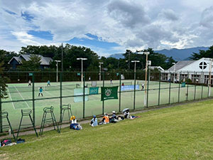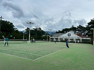 2日目もレッスン、親睦試合と行うなか雨が降り出し、早めの終了となったが、希望者がチャレンジマッチなどを楽しんだ。