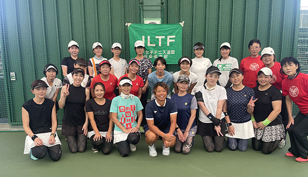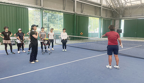 9月8日(月)、岐阜県の「岐阜メモリアルセンター長良川テニスプラザ」にて、本部から井上明里指導員を迎えて技術講習会が開催された。当日は9時半から昼休憩を挟んで15時まで行われ、午前20人、午後19人(中級25人、上級14 人の合計39人)が参加した。非会員1名の参加もあり、会員との交流の場にもなっていた。