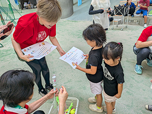 当日は雨模様で屋内での開催となったため湿度が高く、熱中症対策としてこまめな休憩と水分補給を行った。昨年同様、ソニー生命様よりかき氷の差し入れをいただき、今年も大好評だった。最後に賞状とメダル、お土産を渡し、夏休みの楽しいイベントになったようだった。毎年、参加してくれる親子もいて、子供達の成長を見られるのも楽しみの一つとなった。
