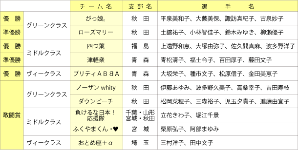 | 大会二日目の参加者と役員・スタッフで | ミドル優勝 四つ葉(福島) | |