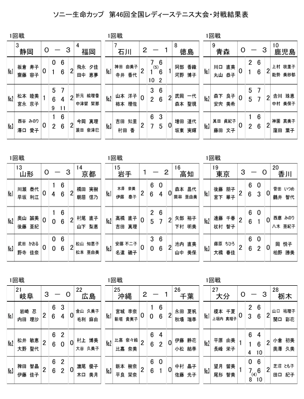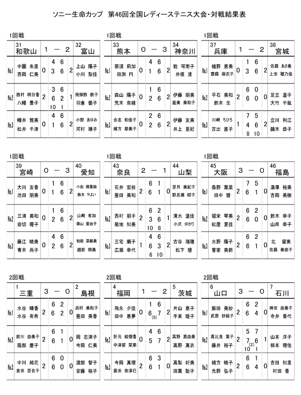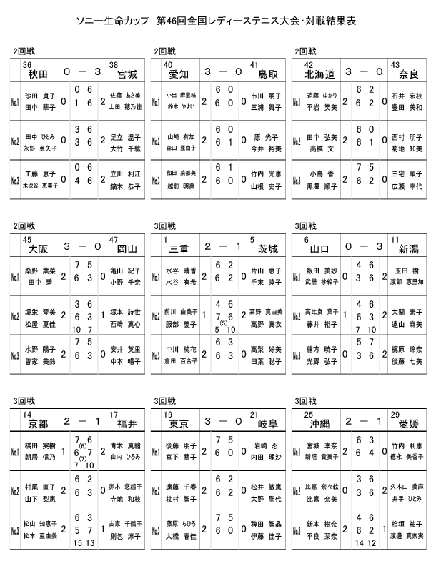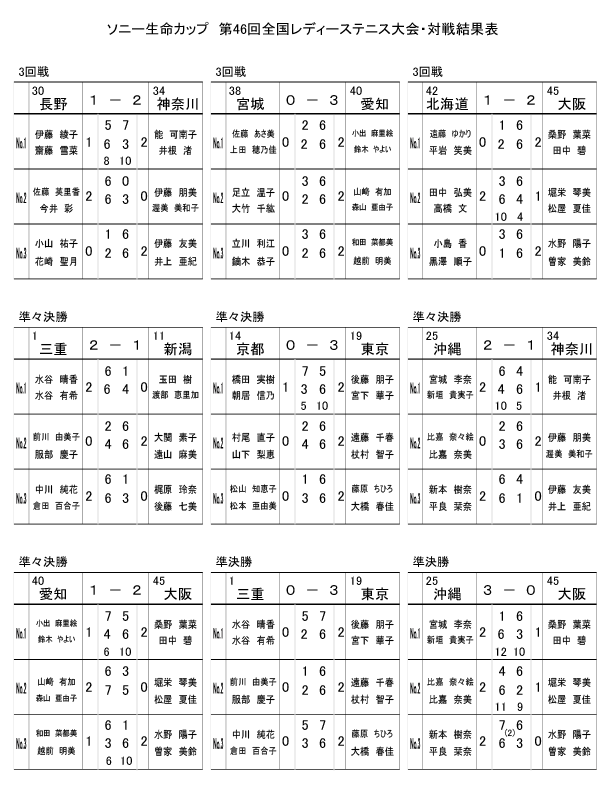 全国決勝大会対戦結果表【一回戦・二回戦・三回戦・準々決勝・準決勝】