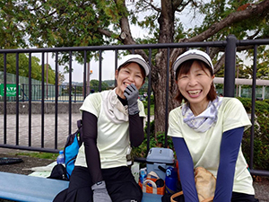 またペアでの申込み以外に個人で申し込むことも可能で、ドローも当日、決まります。即席ペアの場合はお互いの自己紹介から始まることも多く、そのおかげで今年もテニス仲間の輪がどんどん広がりました。人数が不足している対戦には私達スタッフが参加し、普段の大会ではお会いする機会がない方とも楽しくお話ししたりプレイすることができました。