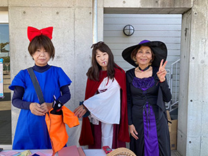 当日は「ザ•魔女」の支部長を筆頭に、手作り斧を背負ったジェイソン、まだまだいけるセーラー服、顔だけキャッツなど、予想をはるかに超えた面白い仮装のラインアップ! 浦安コートがハロウィン仕様に飾り付けられていたことも相まって、他のチームの仮装に大笑いしたり、一緒に写真を撮ったりと、会場はいつもの試合とは違う楽しい雰囲気に包まれていました。