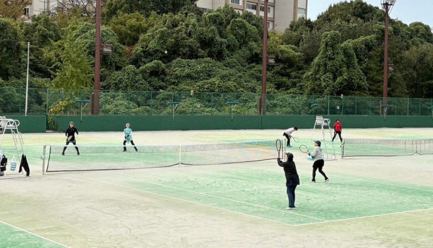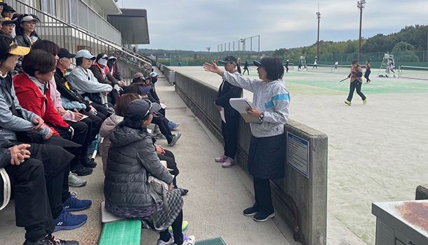 各日とも40チームが参加しての団体戦を行い、テニスの試合はもちろん、じゃんけんで勝敗を決着する場面もあり大いに盛り上がりました。控え時間には趣向を凝らした「ルール講習会」が行われ、笑いも起きるなかで日頃間違えやすいポイントをしっかり確認しました。試合の合間には出店ブースでのお買い物も楽しみ、笑顔溢れる一日を過ごすことができました。